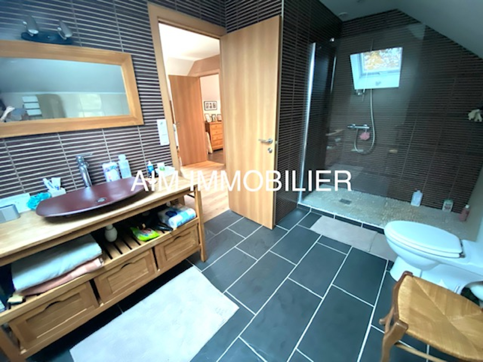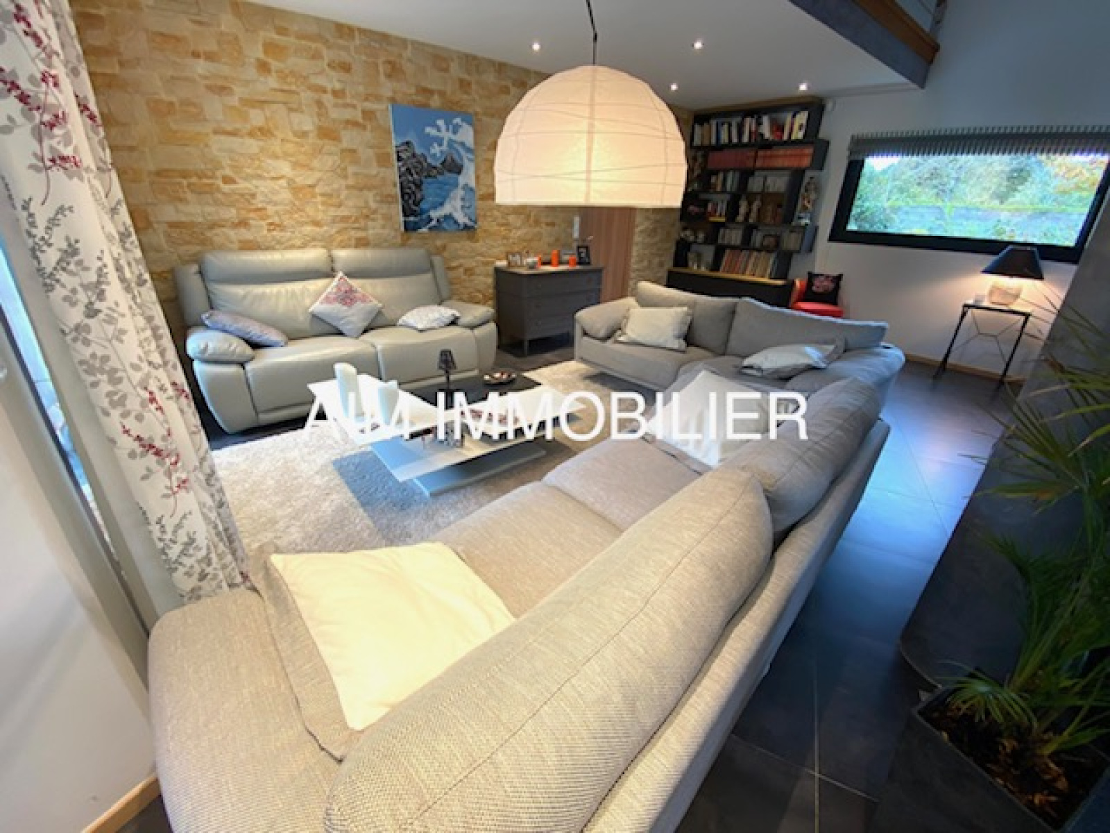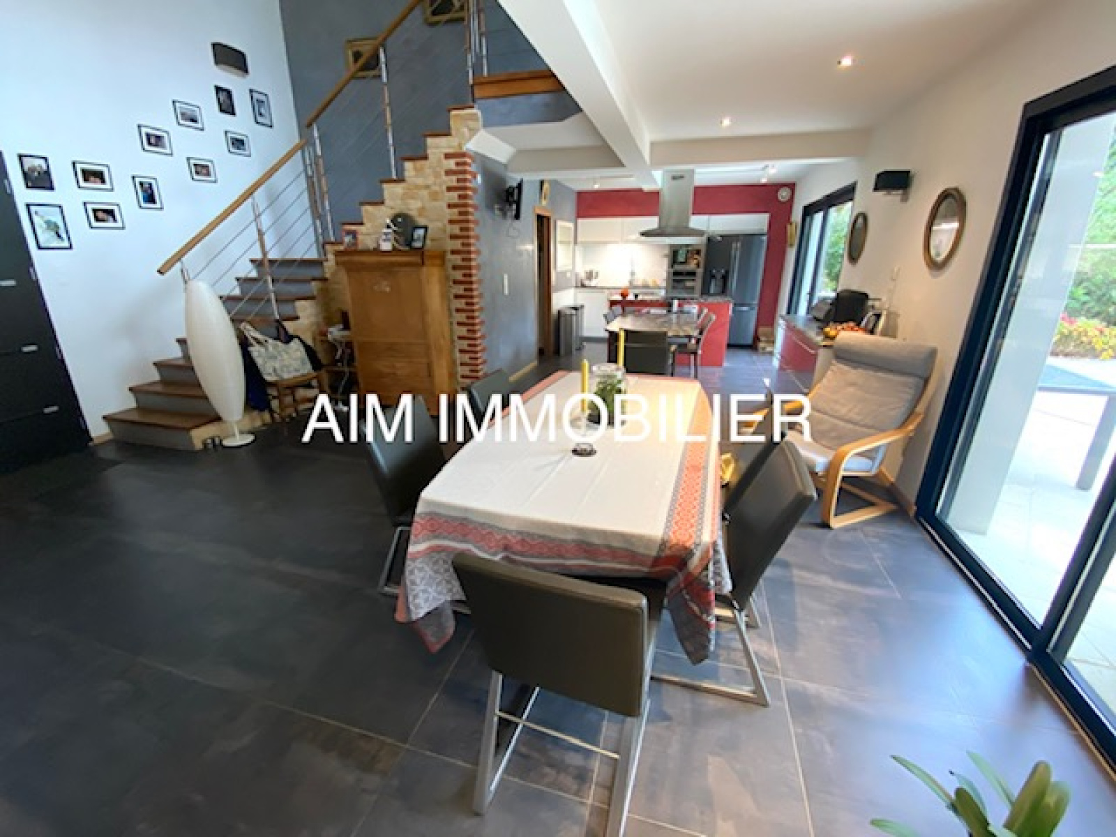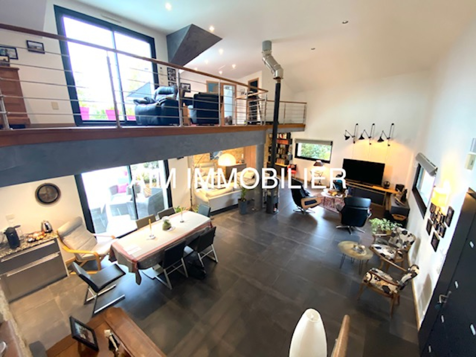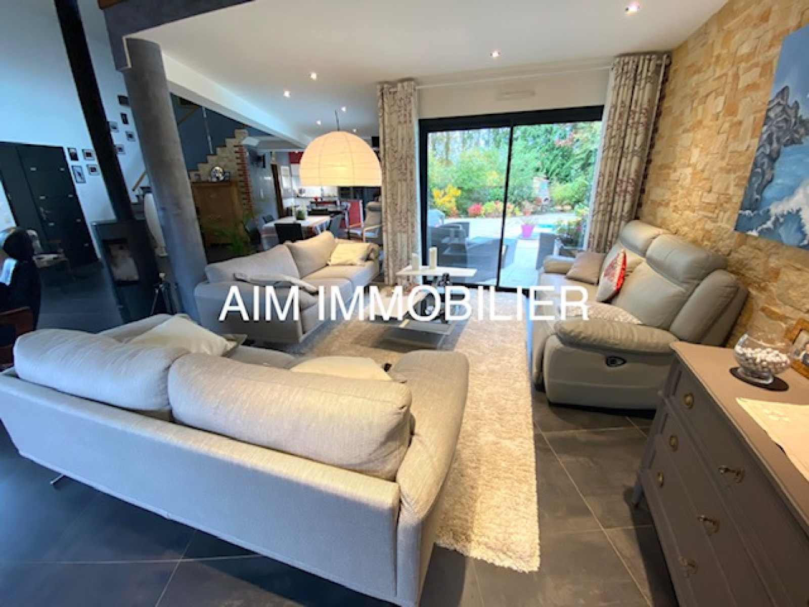 ()Maison contemporaine avec piscine à vendre Vannes- Vous serez charmés par cette villa, située à 10 minute du centre ville de Vannes proposant une vie de plain pied aux volumes généreux. Dès l'entrée, vous remarquerez la très grande pièce de vie proposant un coin cuisine, et un vaste séjour, salle à manger tournés autour du poêle central. Un plafond cathédral distingue cette pièce de vie. Une suite parentale permet de bénéficier d'une vie de plain pied. A l'étage: une vaste mezzanine desservant une chambre avec salle d'eau privative, deux autres chambres, une salle d'eau. Cellier, double garage. Une pièce aménagée au-dessus du garage pouvant faire office de bureau, salle de jeux ou autre. Toutes les pièces de cette maison sont tournées autour de la terrasse et de la piscine chauffée. Vous pourrez profiter d'un très beau jardin clos et arboré. Très beau produit.