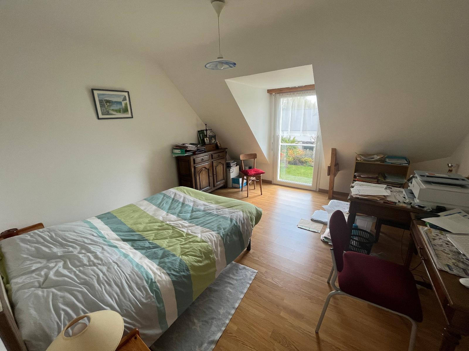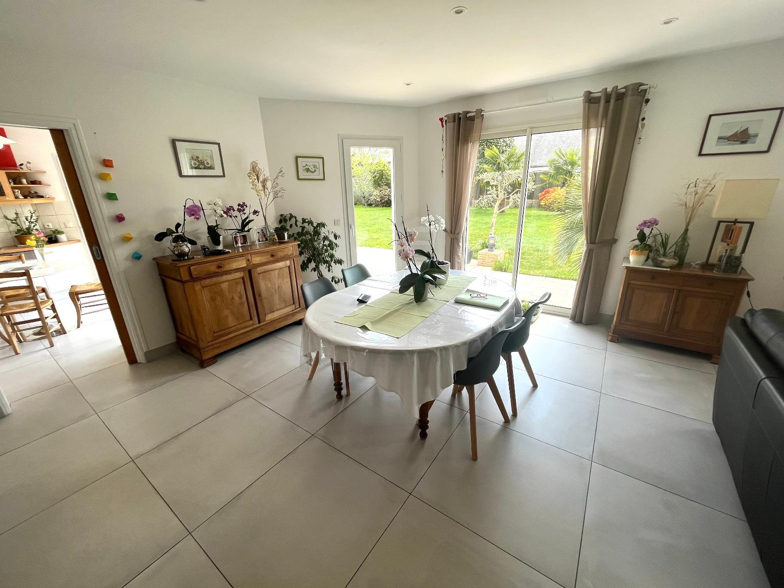 ()Vous serez séduits par cette maison contemporaine, située dans un bel environnement proche de toutes les commodités. Cette maison de 150m² offre un bel espace de vie , une cuisine séparée dînatoire, une arrière cuisine, une grande chambre et une salle d'eau. A l'étage: trois belles chambres, une salle d'eau, grenier aménagé, débarras. Grand garage, cave, abri de jardin. L'exposition sud de cette maison offre une belle luminosité dans toutes les pièces de la maison. Très beau parc clos et arboré de 1500m², piscinable. Bus, commerces à pied. Le centre ville de Vannes étant situé à cinq minutes.
