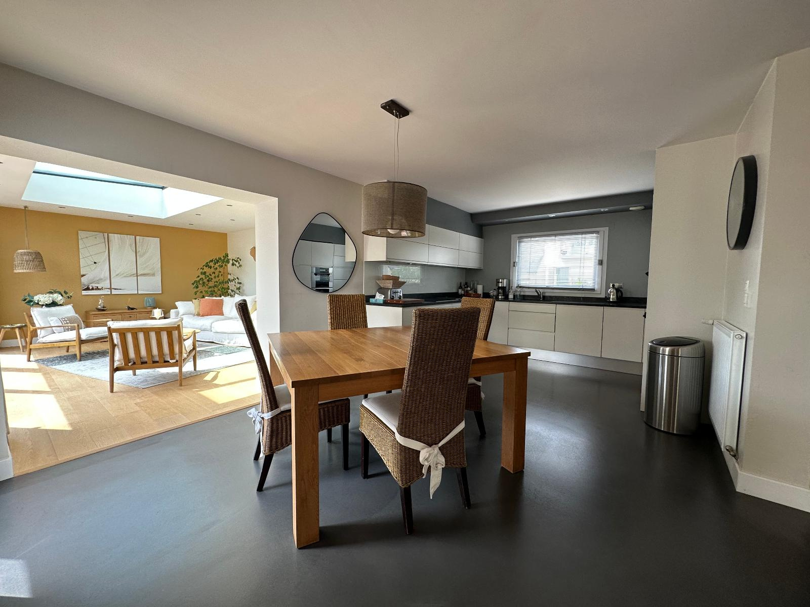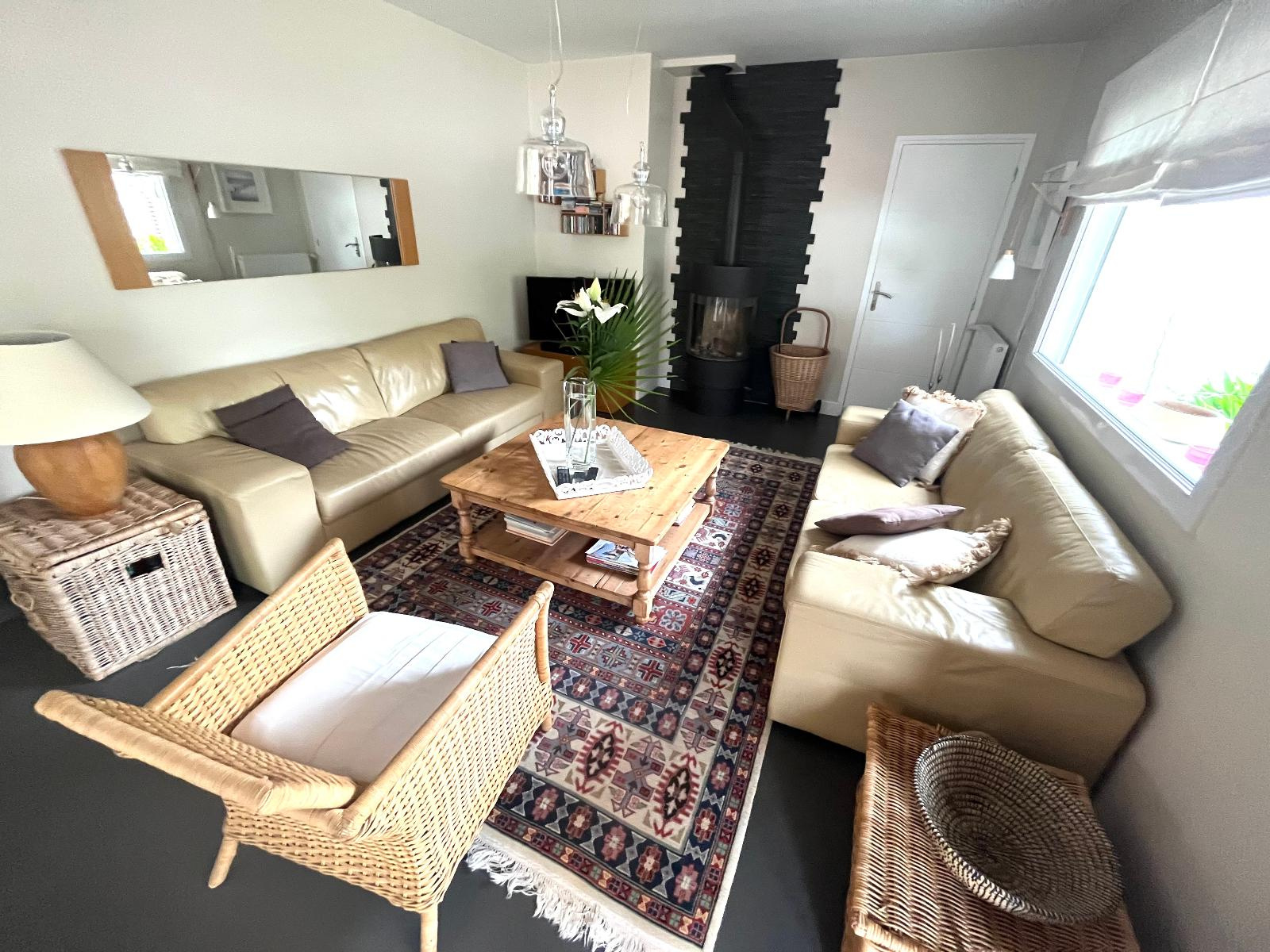 ()L'agence immobilière AIM vous présente en exclusivité cette maison contemporaine spacieuse et moderne, située dans un quartier résidentiel calme de Vannes est. Au rez-de-chaussée, vous trouverez un vaste salon lumineux avec de grandes baies vitrées donnant sur le jardin, une cuisine entièrement aménagée et équipée, une salle à manger conviviale, une chambre avec salle d'eau attenante et des toilettes séparées. Le second espace salon avec un plafond verrière ne pourra que vous séduire. À l'étage, vous découvrirez trois chambres confortables ainsi qu'une salle de bains. La maison dispose également d'un garage avec buanderie et grenier ainsi que d'un jardin paysager avec une double terrasse ensoleillée, idéale pour profiter des beaux jours en famille ou entre amis. Enfin, son emplacement privilégié sera un véritable atout : la proximité des écoles, des commerces, des transports en commun et des principales voies d'accès facilitera vos déplacements au quotidien.