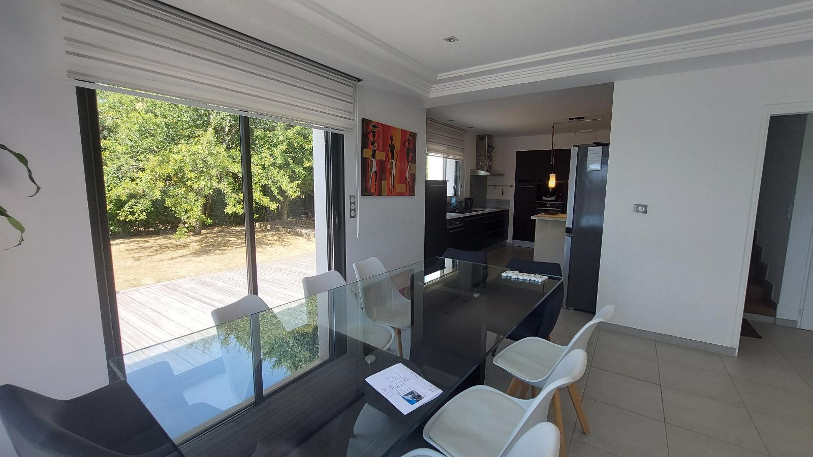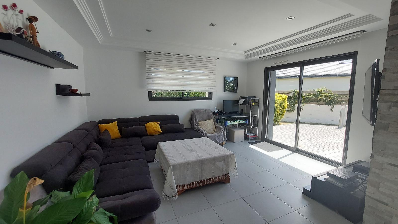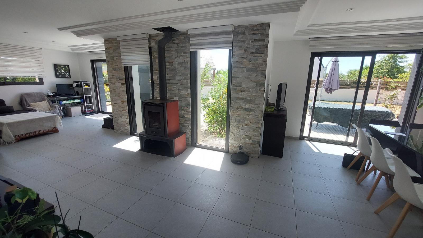 ()A quelques minutes de Vannes, vous apprécierez cette maison moderne lumineuse. Dès l'entrée, vous serez séduits par cette vaste pièce de vie avec une cuisine ouverte le tout donnant sur l'extérieur. Une belle suite parentale complète le rez-de-chaussée. A l'étage: 4 chambres dont deux bénéficient d'un accès à la terrasse, une salle de bains. Garage, cellier. Jardin clos et arboré. Commodités à pied.