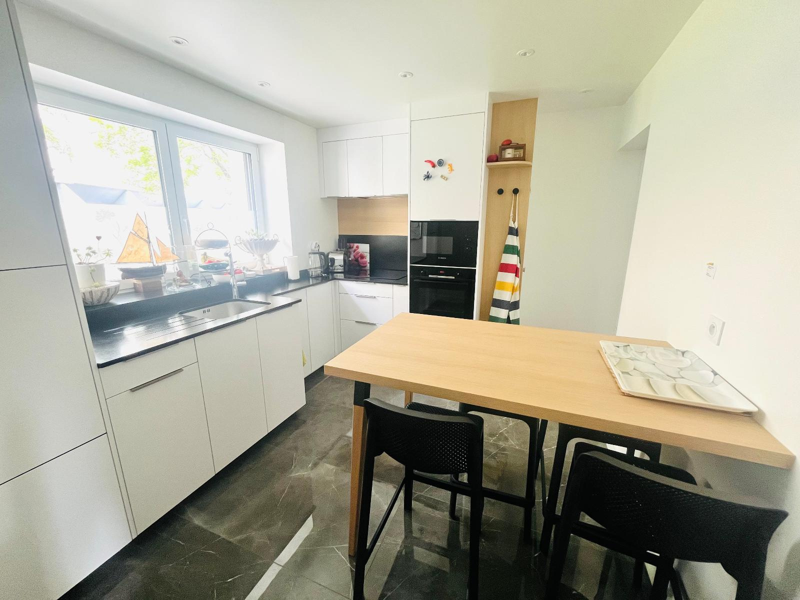 A vendre maison de Charme au C?ur de Vannes Découvrez cette magnifique maison de caractère, nichée au c?ur du centre ville de Vannes. Offrant une tranquillité enviable tout en étant à seulement 5 minutes à pied du pittoresque port de la ville, cette demeure a été entièrement rénovée avec soin et attention aux détails, utilisant des matériaux de qualité pour créer un espace de vie chaleureux et accueillant. Au rez-de-chaussée, vous serez accueilli par un hall d'entrée lumineux, ouvrant sur un séjour spacieux baigné de lumière naturelle, avec un accès direct à une terrasse ensoleillée exposée plein sud, idéale pour profiter des journées ensoleillées. Une cuisine séparée, parfaitement équipée et propice aux repas conviviaux, ainsi qu'une suite parentale confortable, complètent cet étage et offrent une vie de plain-pied des plus agréables. À l'étage, deux belles chambres lumineuses avec placards intégrés offrent des espaces de repos paisibles, tandis qu'une salle d'eau moderne ajoute une touche de confort supplémentaire. Un niveau supplémentaire vous réserve une belle surprise : une pièce spacieuse de 30 m², offrant une polyvalence totale pour répondre à vos besoins et désirs, avec un accès direct à un jardin verdoyant et tranquille, invitant à la détente et aux moments de convivialité. En outre, un garage pratique et une buanderie bien aménagée complètent cet ensemble pour répondre à tous vos besoins en termes de confort et de praticité au quotidien. Ne manquez pas cette opportunité rare d'acquérir une propriété alliant charme, confort et emplacement de choix au c?ur de la belle ville de Vannes. Contactez-nous dès aujourd'hui pour organiser une visite et laissez-vous séduire par le potentiel de cette maison exceptionnelle.