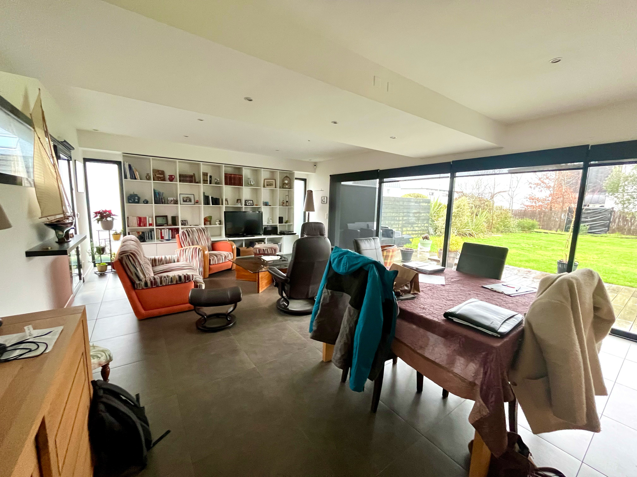 Dès l’entrée, vous découvrirez un espace de vie lumineux et convivial, largement ouvert sur le jardin grâce à une très grande baie vitrée qui efface les frontières entre intérieur et extérieur. La cuisine semi-séparée, à la fois fonctionnelle et chaleureuse, prolonge naturellement cet espace pensé pour le partage et la convivialité.
