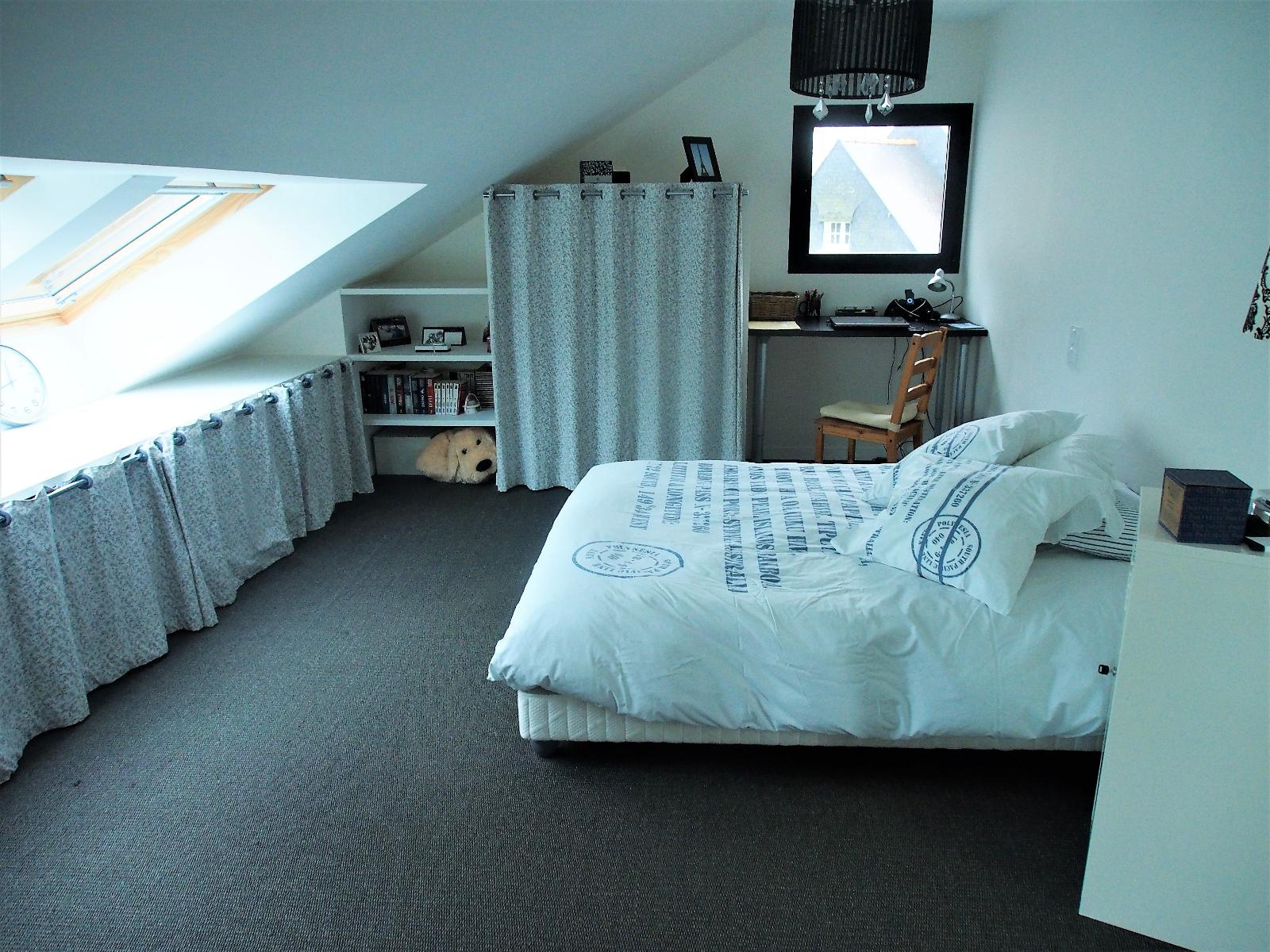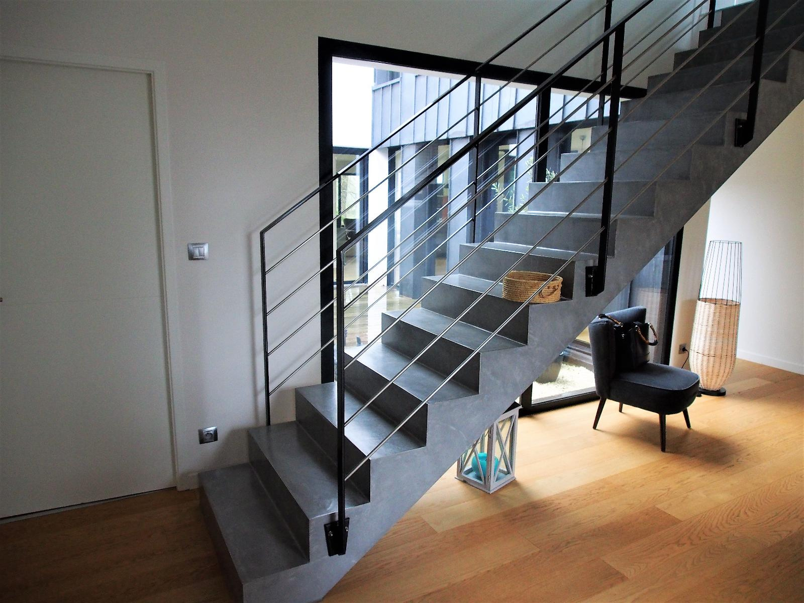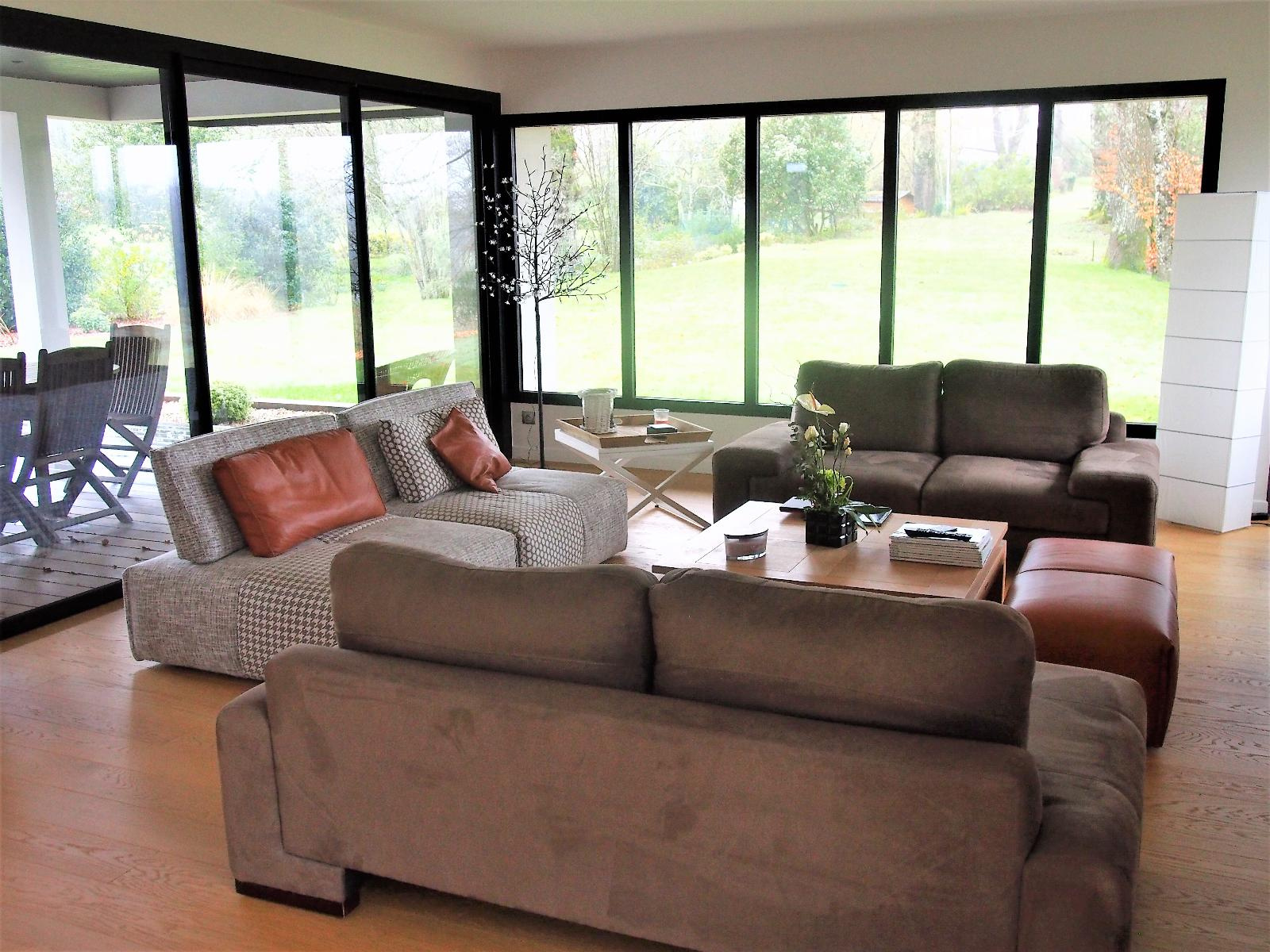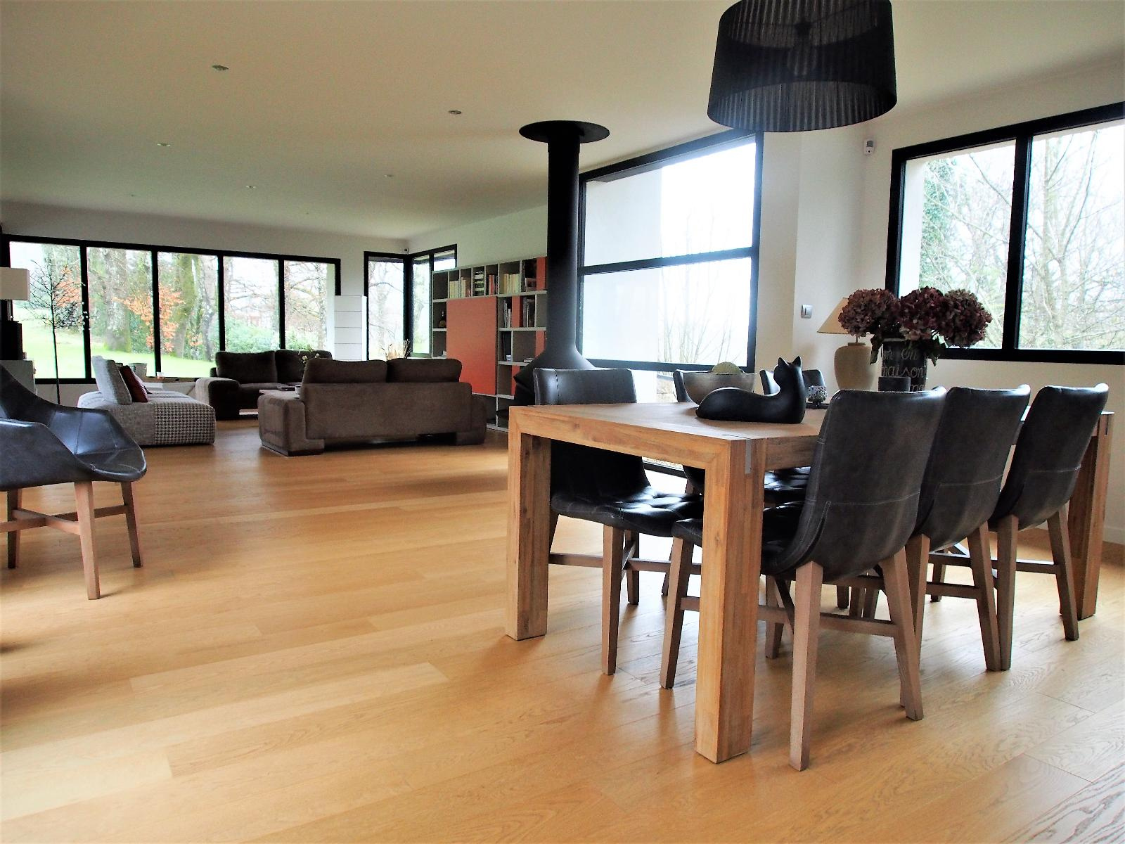 Vannes (56000)Maison contemporaine à vendre Vannes- Dès l'entrée, vous serez immédiatement séduits par cette maison contemporaine alliant le charme par ses matériaux nobles et un esprit contemporain. L'entrée, illuminée par un patio, vous conduit à une très belle pièce de vie faisant office de séjour, salle à manger, entièrement ouverte sur l'extérieur par ses vastes espaces vitrés. Dans la continuité, vous apercevrez la cuisine semi-ouverte. Un coin nuit offre un espace bureau, une suite parentale avec chambre, dressing et salle d'eau. L'escalier en béton ciré amène à une vaste mezzanine, une chambre avec salle d'eau privative, deux autres chambres et une salle de bains. Parc arboré. Très belle construction. Coup de c?ur assuré.