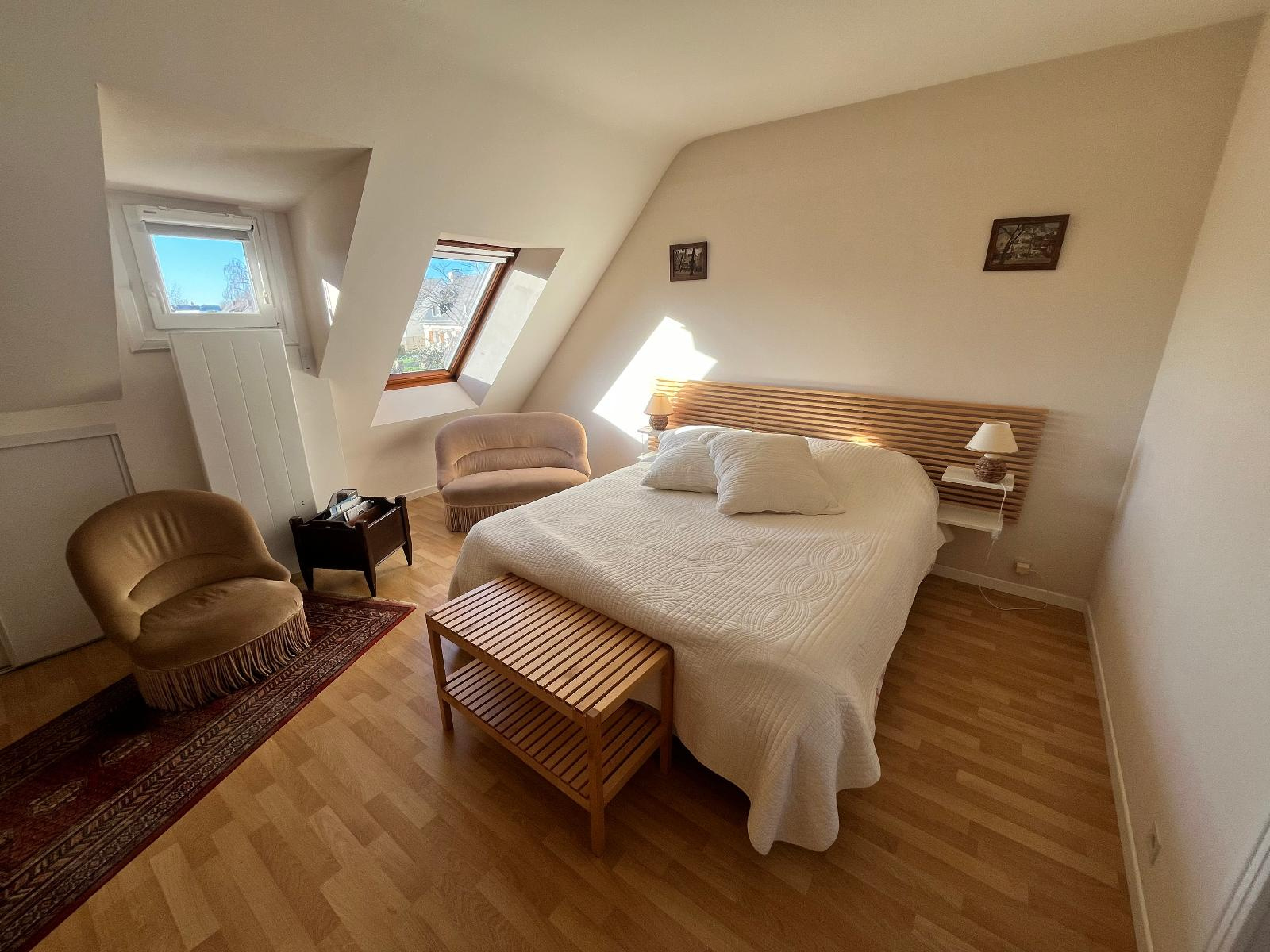 Vannes (56000)Charmante maison située dans le quartier ouest de Vannes, au sein d'un environnement calme et résidentiel recherché. Cette maison, exposée plein sud, séduit par ses beaux volumes et son atmosphère chaleureuse. Idéalement positionnée, elle offre un cadre de vie paisible tout en étant proche des commodités (bus , écoles et commerces). Le séjour lumineux, exposé plein sud, constitue le c?ur convivial de la maison. Agrémenté d'une cheminée, il devient un espace accueillant pour des moments de détente en famille ou entre amis. La luminosité naturelle inonde cet espace, créant une ambiance agréable et lumineuse. Le rez-de-chaussée se poursuit avec une cuisiné séparée aménagée, une suite parentale offrant une belle chambre, un dressing et une salle d'eau, assurant ainsi une vie de plain pied. A l'étage: deux chambres avec rangements, une salle d'eau, un bureau et une autre grande chambre avec salle de bains privative. L'orientation plein sud de la maison est un atout majeur, permettant de profiter pleinement du jardin ensoleillé. Un garage et une cave complètent ce bien. Cette propriété représente une opportunité rare sur le marché de Vannes ouest. Gare de Vannes à 5 minutes en voiture, le centre de ville à 3 minutes. Bus à pied. Ecoles à proximité immédiate.