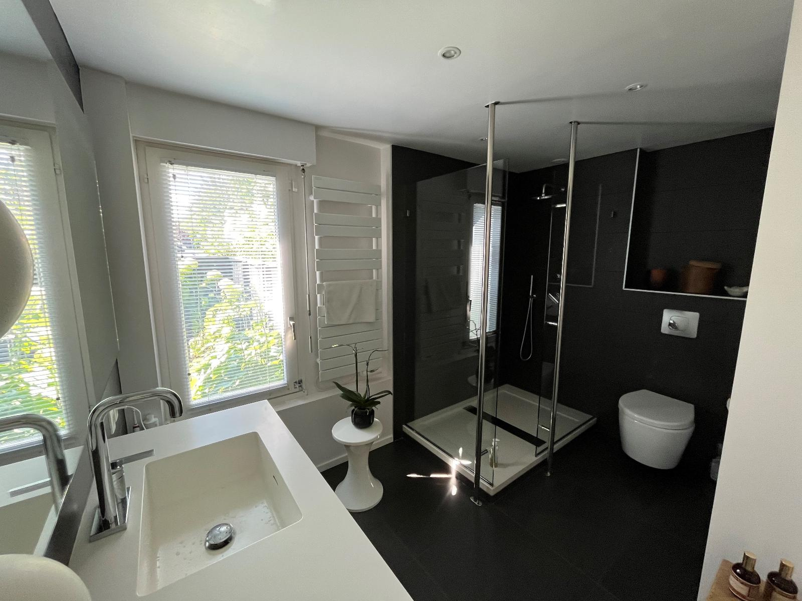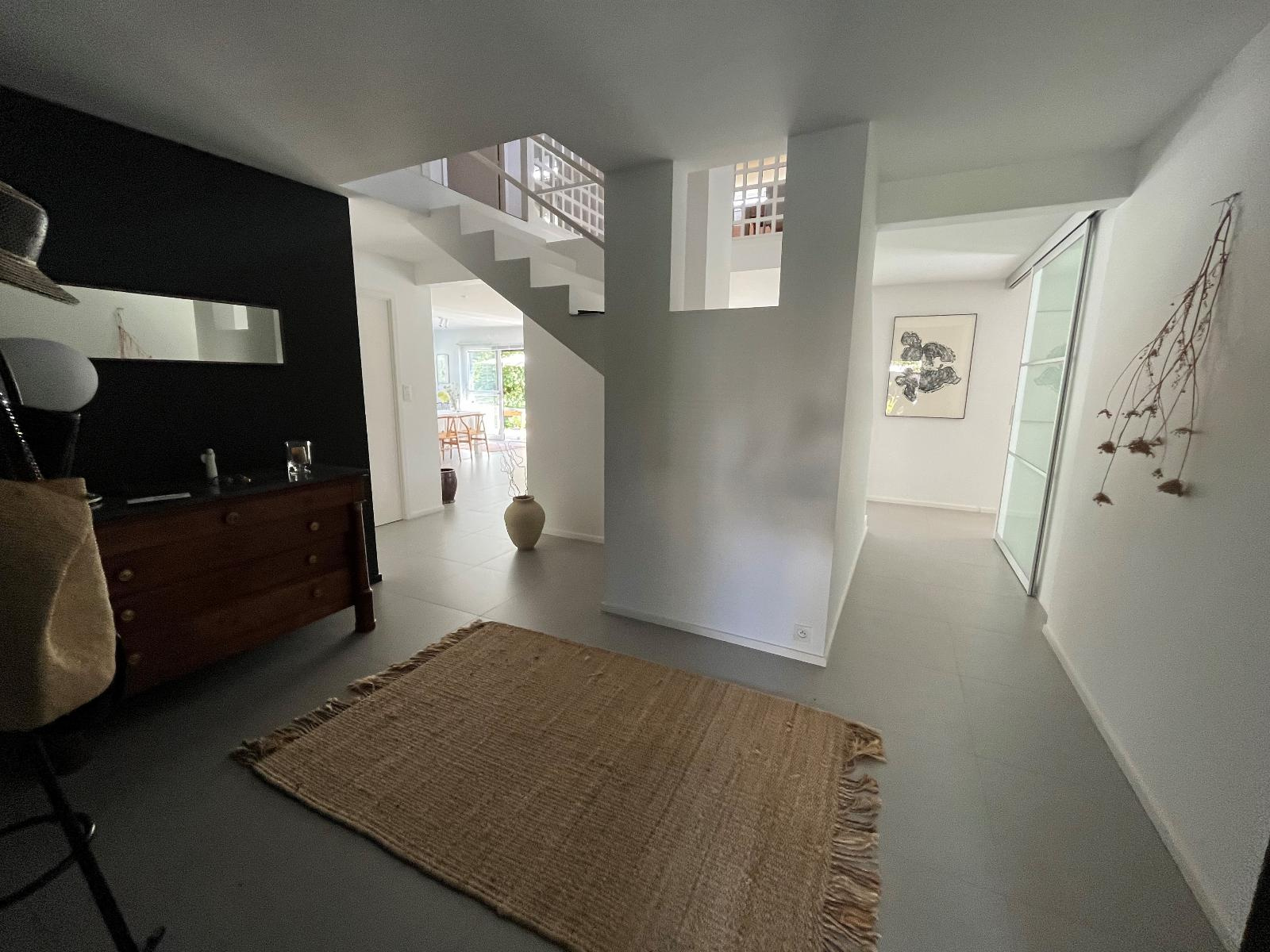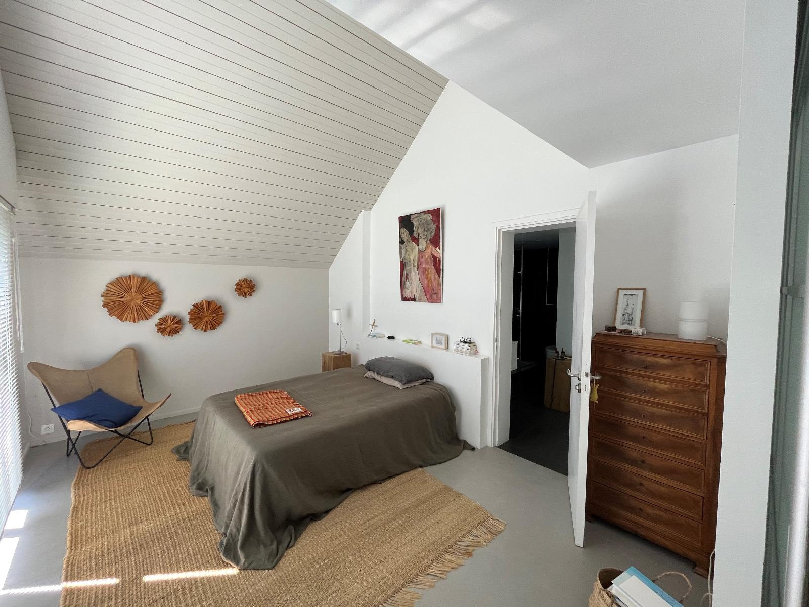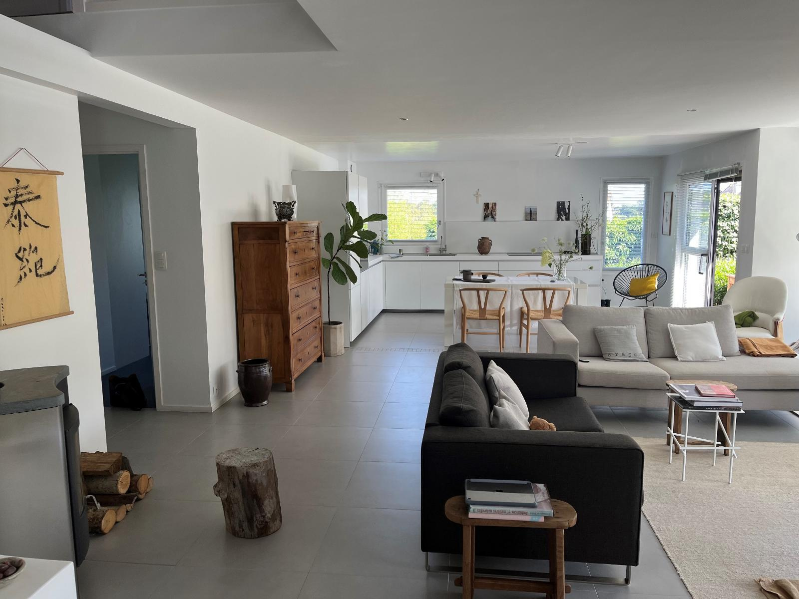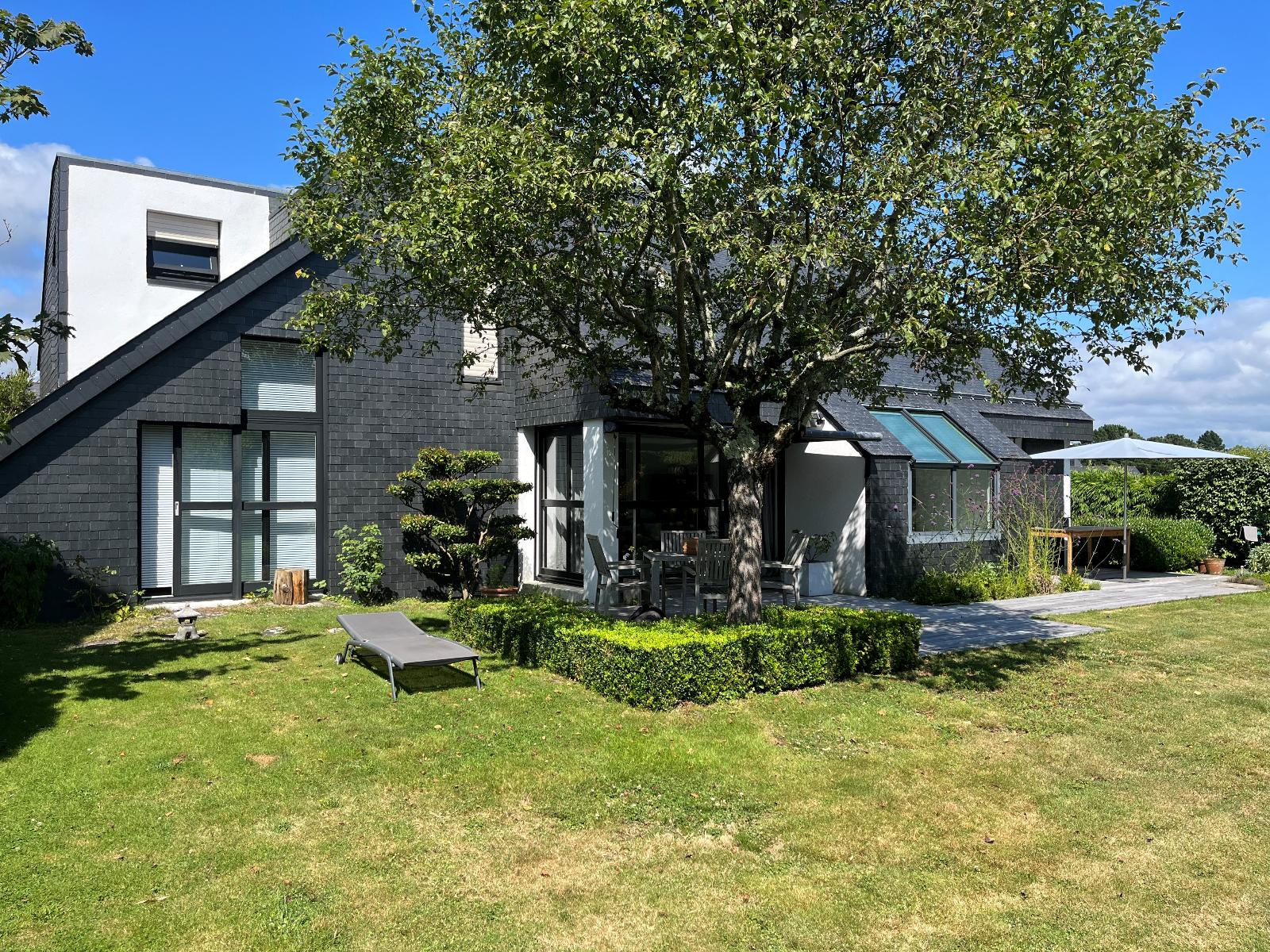 Vannes (56000)Venez découvrir cette magnifique maison d'architecte de 161 M² située sur la rive droite du port de Vannes, véritable havre de paix nichée dans un jardin clos et arboré très agréable. Vous trouverez au rez de chaussée un hall d'entrée, un bel espace de vie baigné de lumière bénéficiant d'une triple exposition est-sud-ouest avec poêle et une cuisine ouverte équipée et entièrement aménagée très fonctionnelle. Un espace nuit de plain-pied complète ce niveau avec une suite parentale avec sa salle d'eau privative (douche) et une seconde chambre avec dressing. L'étage comprend une mezzanine avec un espace bureau et bibliothèque, trois belles chambres dont une avec des rangements et une salle de bains. Jardin paysager et clos de 675 m², garage avec portail motorisé et carport.