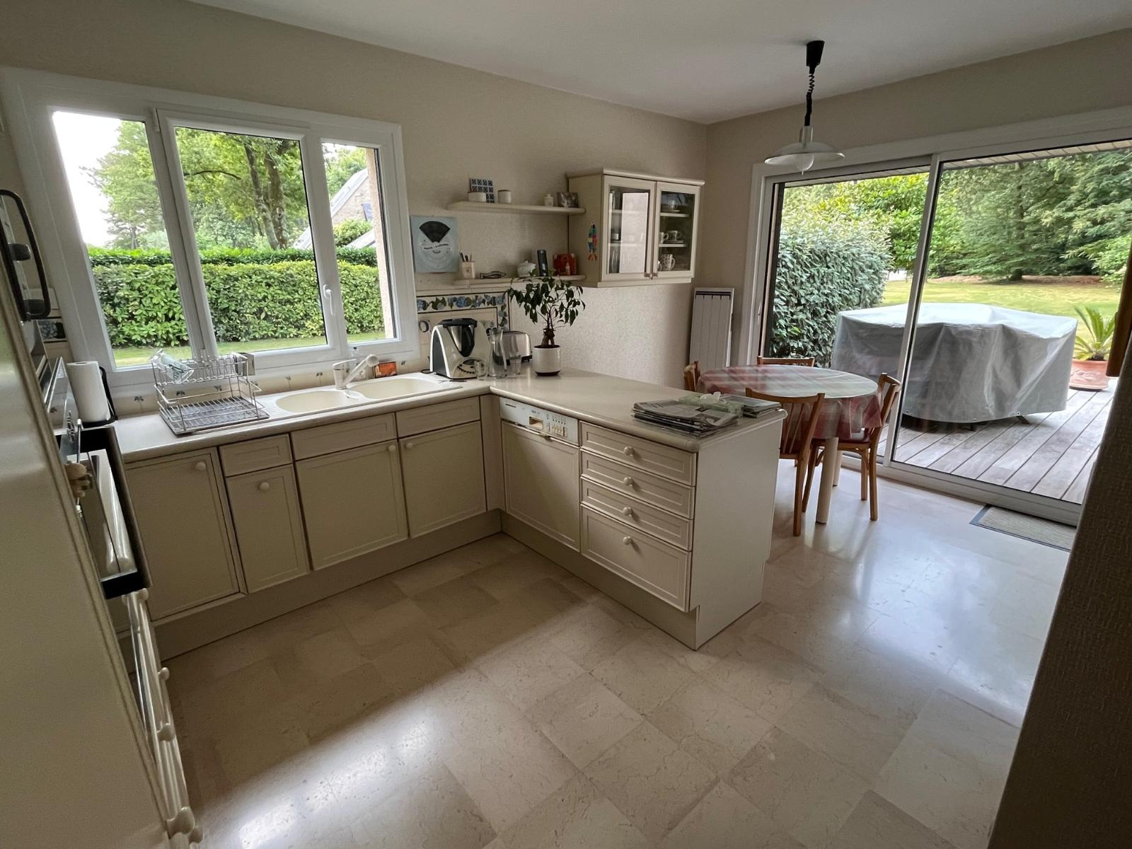 Vannes (56000)Située dans un quartier résidentiel paisible, cette magnifique maison contemporaine offre un cadre de vie idéal à l'ouest de Vannes. Dotée de beaux volumes, cette propriété propose une vie de plain-pied agréable et confortable. Au rez-de-chaussée, vous trouverez un vaste espace de vie lumineux comprenant un salon spacieux, une salle à manger conviviale et une cuisine dinatoire. Les grandes baies vitrées ouvrent sur une terrasse ensoleillée, offrant une vue imprenable sur le jardin paysager. Une belle suite parentale vient parfaire la vie du rez-de-chaussée. L'étage supérieur accueille quatre chambres, une salle de bains (baignoire et douche). Chaque chambre bénéficie de fenêtres généreuses qui laissent entrer la lumière naturelle et offrent une vue sur les environs verdoyants. Un sous-sol pratique complète cette maison, offrant de multiples possibilités de rangement et d'aménagement supplémentaires. A l'extérieur, un superbe terrain clos et arboré entoure la propriété, créant un espace privé où vous pourrez vous détendre en toute intimité. Que ce soit pour organiser des barbecues en famille, profiter des journées ensoleillées ou simplement vous ressourcer dans la nature, ce jardin offre un cadre idyllique. La localisation de cette maison est également un atout majeur. Au c?ur du bois du Vincin, vous bénéficierez d'un environnement calme et verdoyant tout en étant à proximité des commodités et des infrastructures de Vannes.