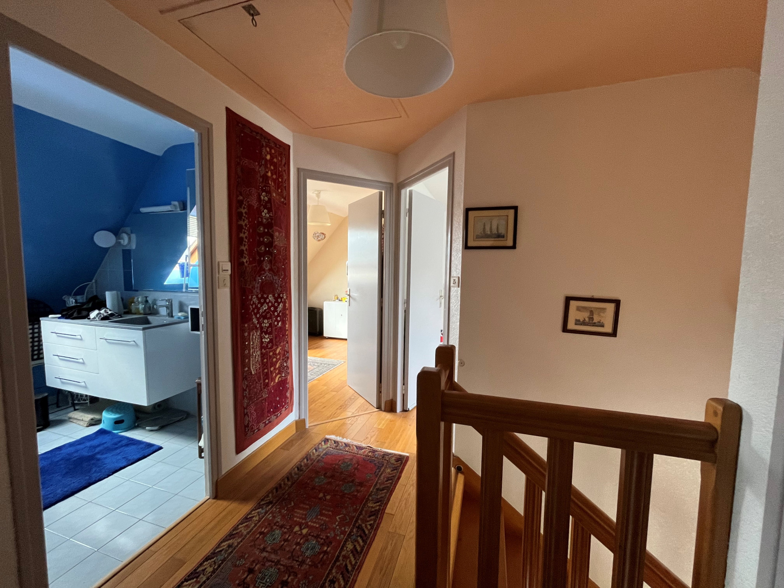 A l’étage, l’espace nuit se compose de trois chambres confortables, un bureau ou salle de jeux, idéales pour accueillir famille et invités, ainsi qu’une salle de bains.