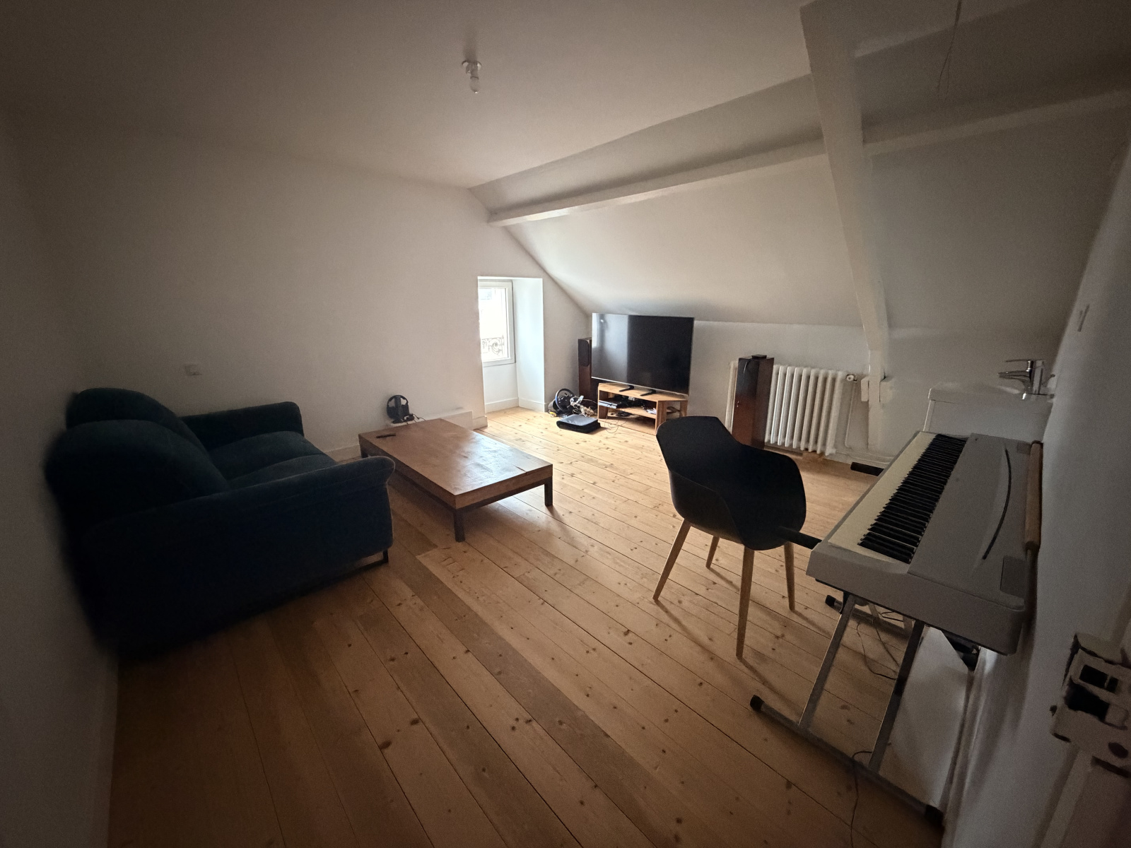 Le rez-de-chaussée propose un vaste séjour avec cuisine ouverte de 68 m², offrant de beaux volumes et une belle luminosité, parfait pour créer un espace de vie convivial et contemporain tout en conservant le charme de l’ancien.