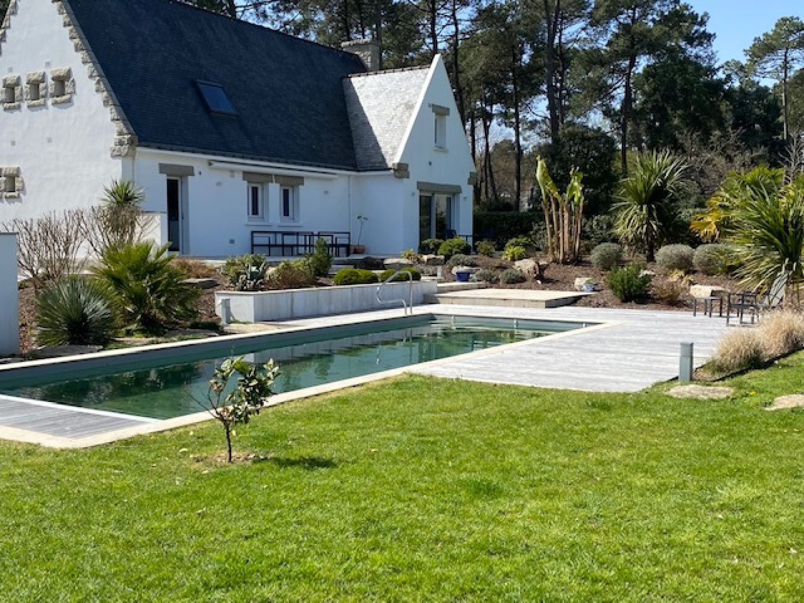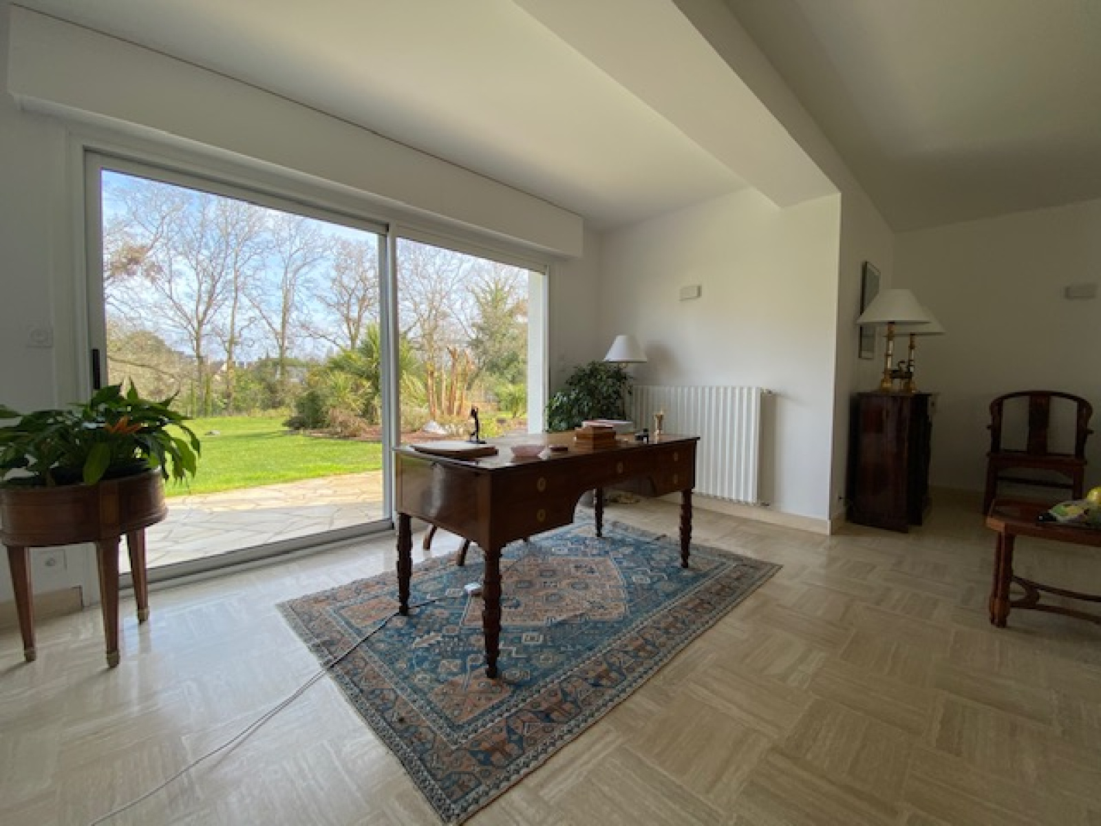 Vannes (56000)Propriété à vendre Vannes - Vous serez séduits par l'emplacement et les volumes de cette propriété. Située sur un parc clos et arboré de plus de 4000m², cette maison offre une belle entrée desservant une grande pièce de vie lumineuse ouverte sur 2 vastes terrasses et jardin, une grande cuisine dînatoire, un bureau, une grande suite parentale avec salle de bains (douche et baignoire). A l'étage: une grande mezzanine avec rangements, 3 belles chambres, une salle de bains (douche et baignoire). Sous-sol complet. Parc clos et arboré avec piscine chauffée neuve (12x4). Beau produit.