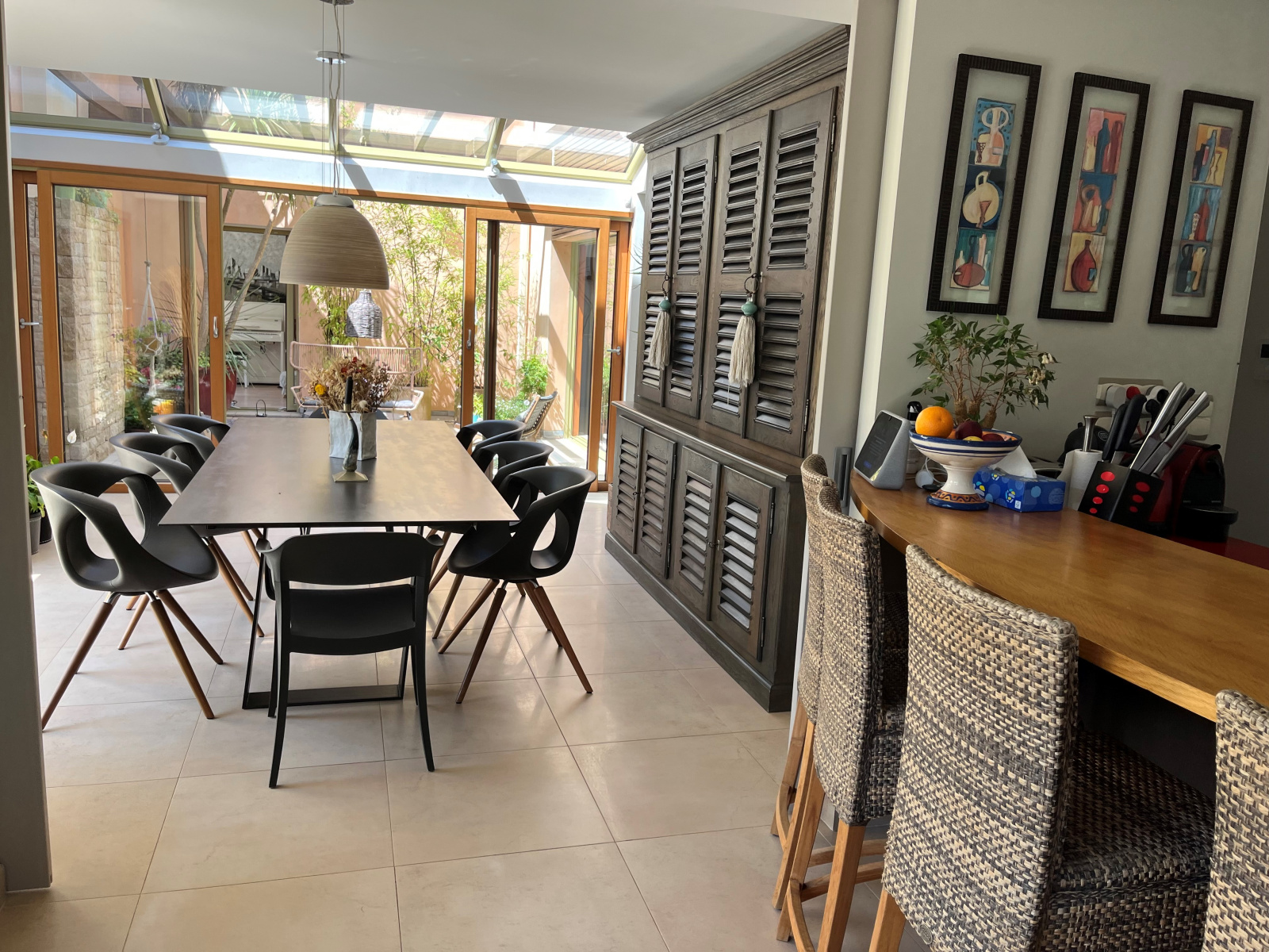 Le rez-de-chaussée se compose d'une cuisine équipée ouverte sur une salle à manger, un grand séjour, ces deux pièces toutes deux lumineuses sont disposées autour d'un patio agréable. Une suite parentale spacieuse permet de profiter d'une vie de plain-pied ainsi qu'un bureau ou chambre.