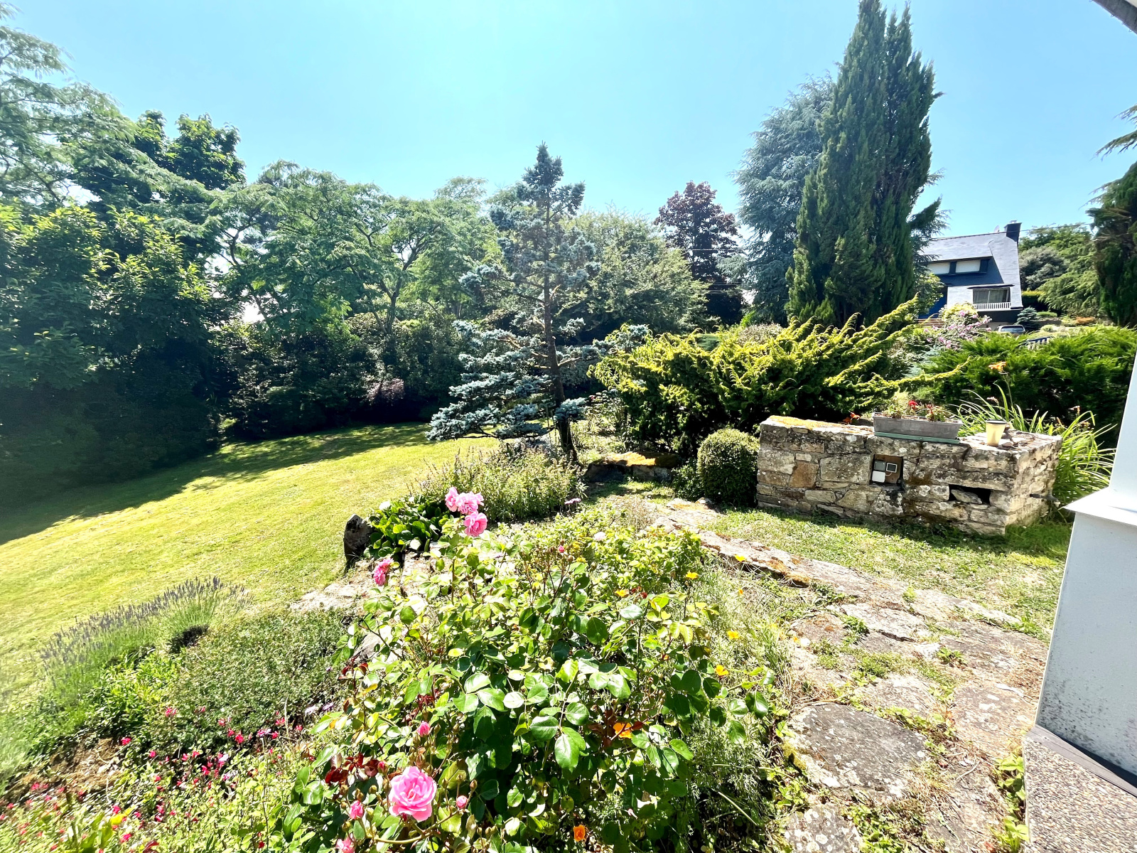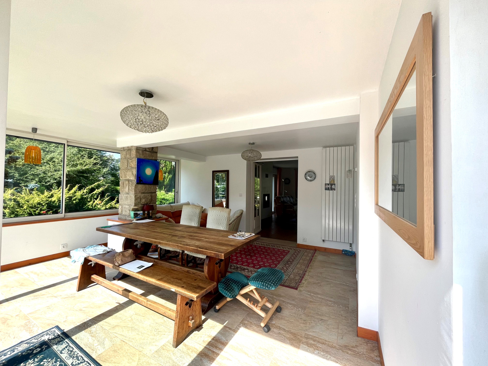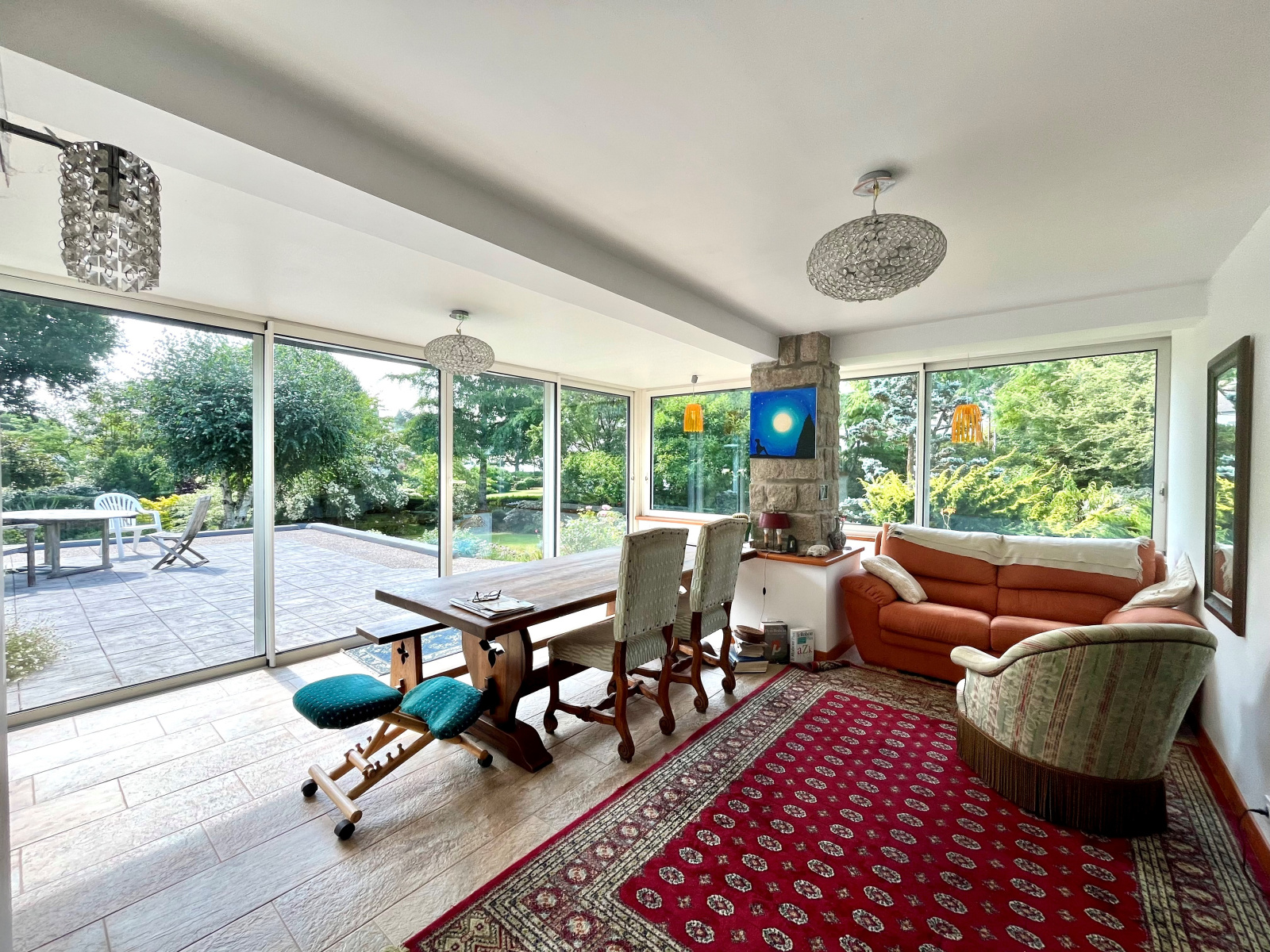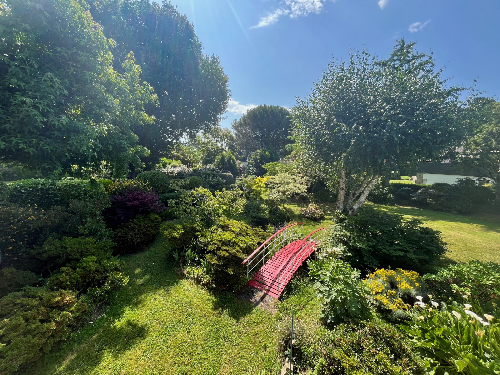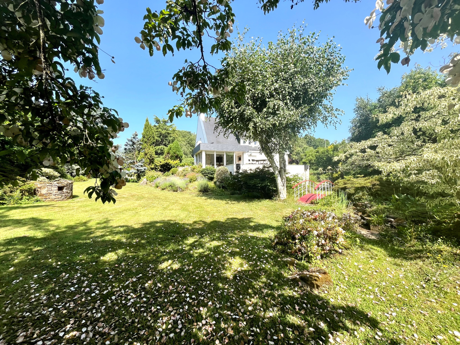À l’extérieur, un superbe parc arboré entoure la maison, créant un véritable cocon de verdure propice à la détente, aux jeux ou à la convivialité en plein air.