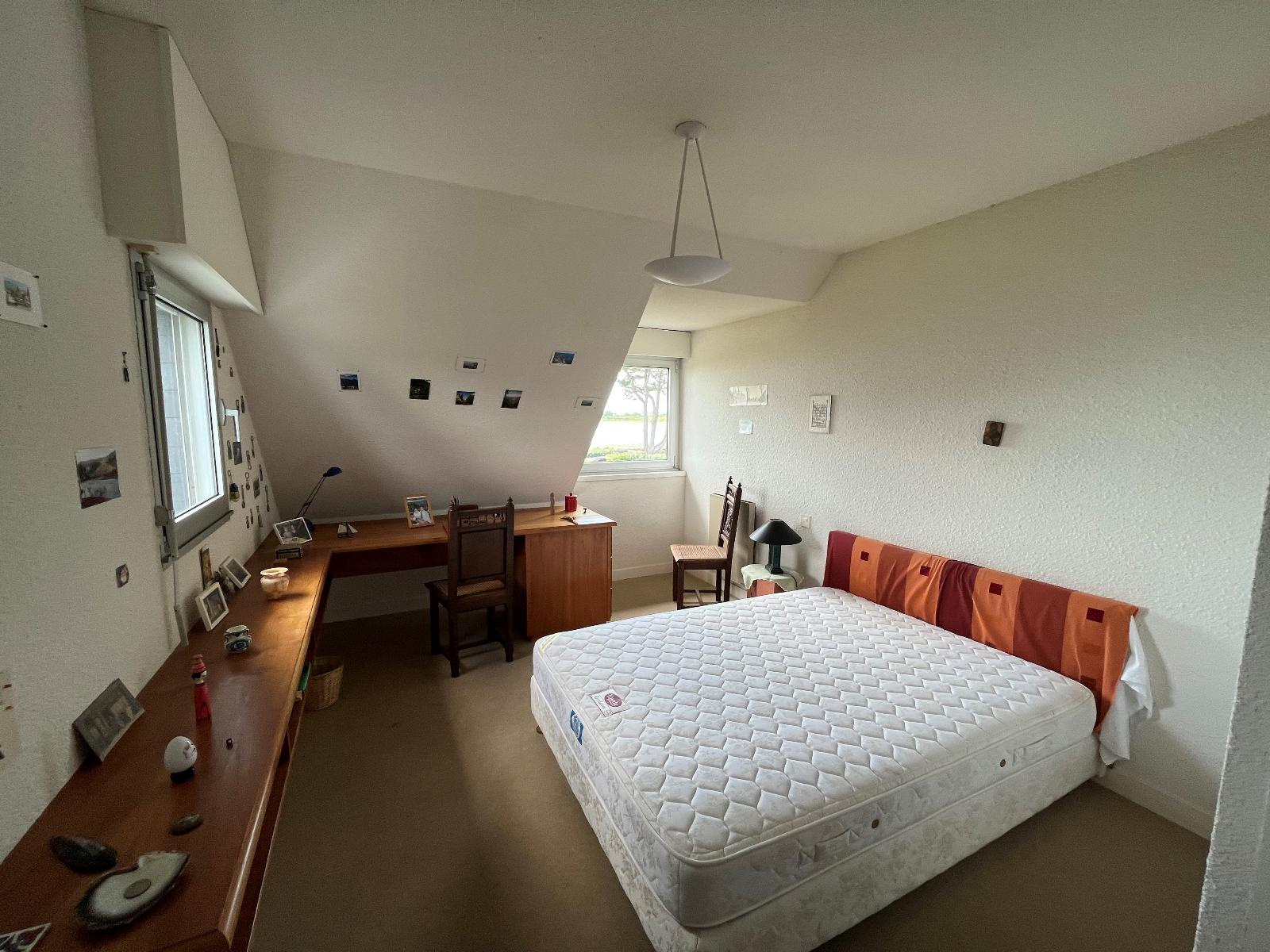 Maison d'architecte à vendre en première ligne du Golfe du Morbihan, sur la commune de Séné. Au sein d'un petit hameau calme, à dix minutes du port de Vannes, nous vous invitons à venir découvrir cette maison d'architecte d'une superficie actuelle de 110m² et bénéficiant d'une vue époustouflante sur le Golfe du Morbihan. Dès l'entrée, vous serez attirés par cette vue panoramique qu'offre le séjour et la véranda. Le rez-de-chaussée se compose également d'une cuisine séparée, buanderie et cellier ainsi que de deux chambres avec rangements et une salle de bains. A l'étage: deux chambres offrant une vue dégagée sur le Golfe, une salle d'eau et combles aménageables. Jardin clos et arboré à l'abri des regards et disposant d'un accès direct aux sentiers côtiers et à une petite plage familiale. Un carport pouvant être transformé en habitation.