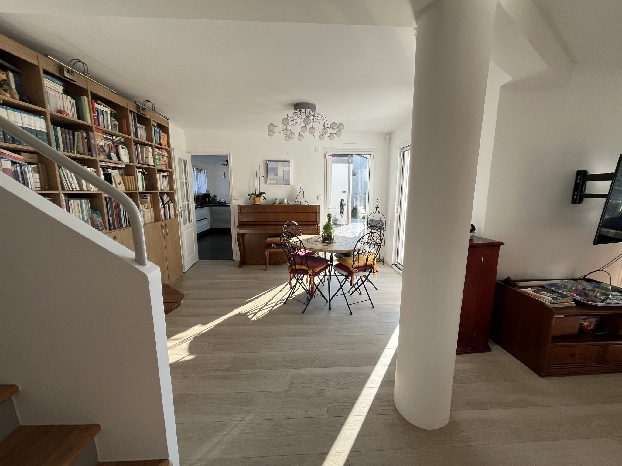 Cette propriété, rénovée avec soin, offre des espaces de vie généreux et une luminosité exceptionnelle grâce à son architecture contemporaine.