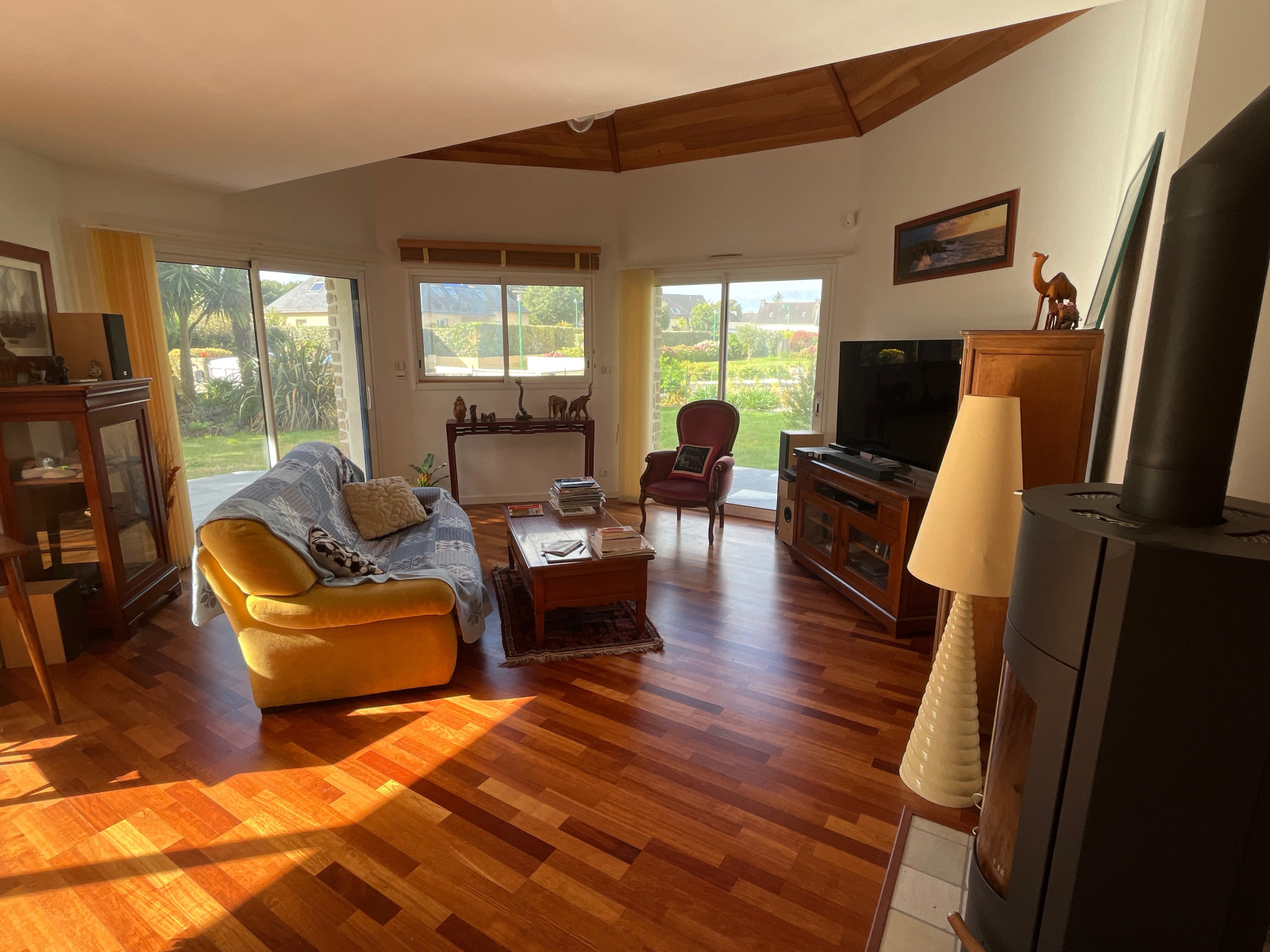 À l’extérieur, le jardin paysager, clos et piscinable, séduit par son calme et son charme.