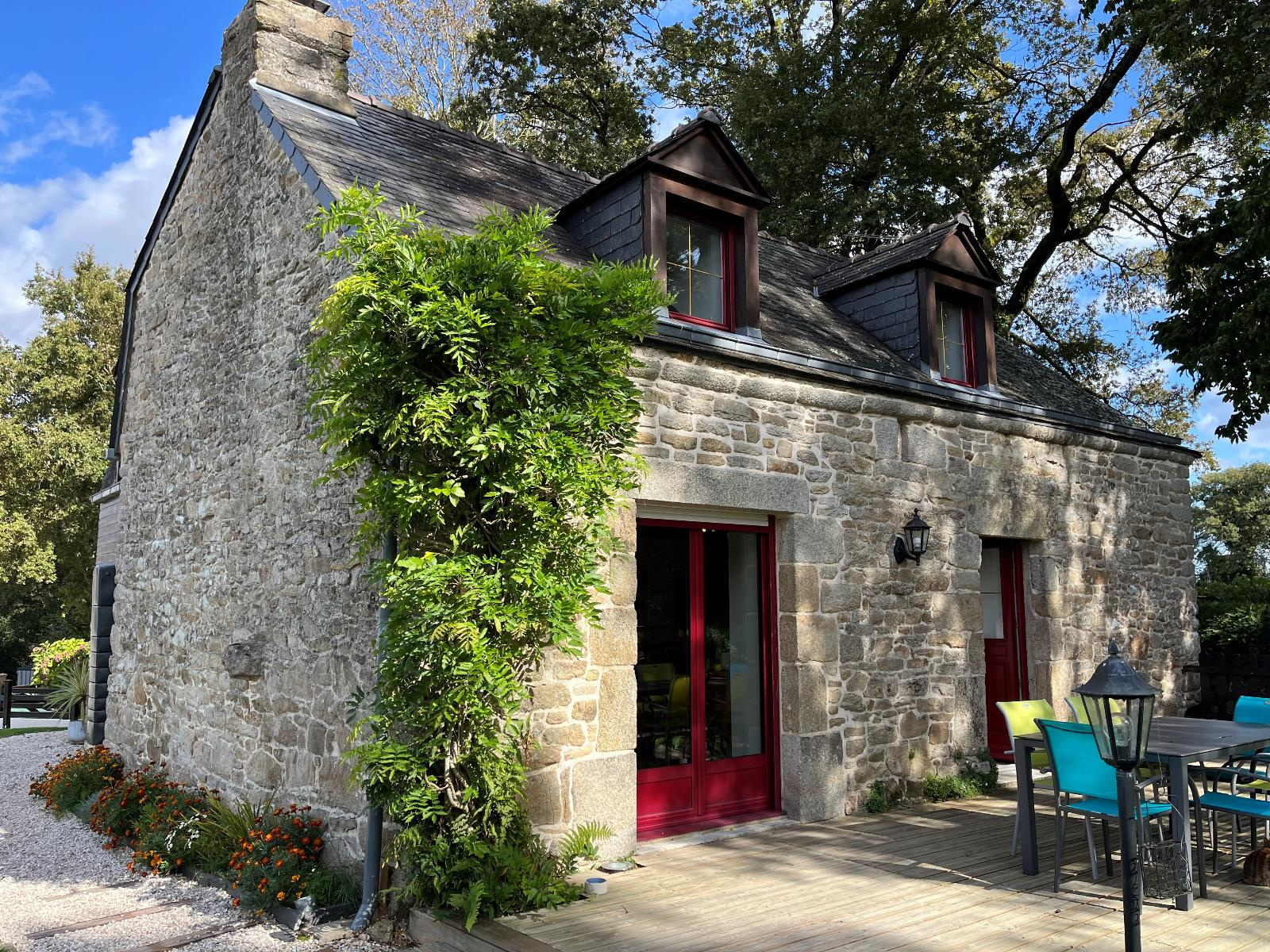 La Vraie-Croix (56250)La Vraie Croix, au calme d'une impasse, dans un environnement verdoyant et arboré, cette charmante maison en pierres sans vis-à-vis, offre un hall d'entrée, un grand salon avec cheminée, une cuisine équipée, cellier, une chambre avec salle d'eau. A l'étage, un grand dégagement distribue 3 chambres , une salle de bains , rangements. Vous serez charmés par la qualité de l'ensemble. Jardin clos et arboré.